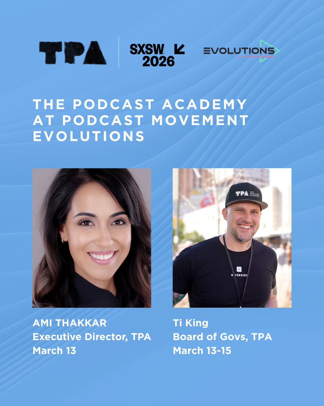 TPA Board of Governors member Ti King will manage the official on-site podcast production experience, powered by The Podcast Academy in partnership with Nomono and Simplecast.